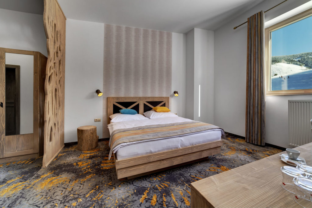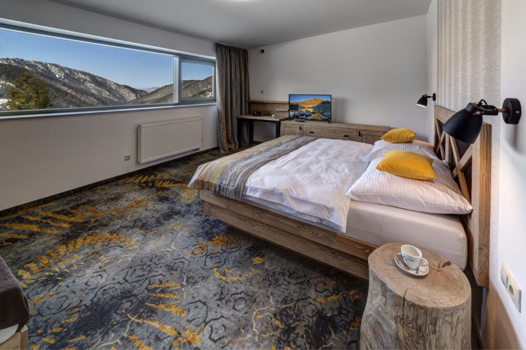 Dvojlôžková izba Vám ponúka komfort pocitu priestrannosti s krásnymi výhľadmi na les, liptovskú dolinu a hory. Je ideálna pre páriky, ktoré si chcú vychutnať súkromie a ticho horského prostredia.